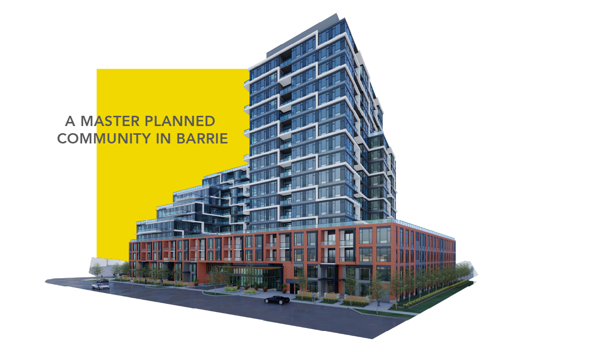 A master-planned community comprising a 17-storey apartment condo building and modern townhouses in a great location in Barrie